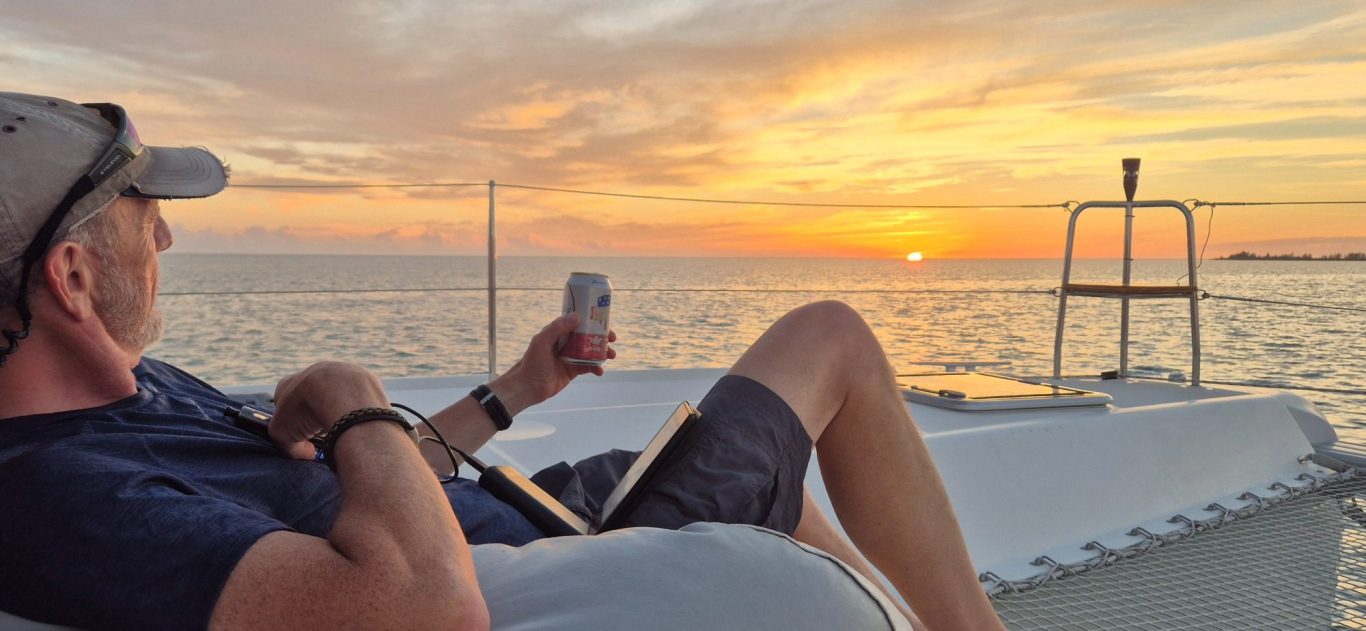 As Pete is ‘Master’ of the boat, (something that he loves being!), only he is allowed onshore taking all the documents with him, whilst Kylie must wait onboard. The Bahamas has a great ‘click to clear’ process where you enter all your information online, so it was a quick process, and we were soon having our first cold beer!