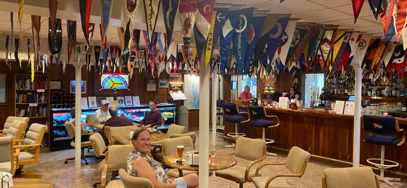 We had been warned that, as is common in yacht clubs, that they would want our RAF Sailing Association pennant to join their collection. We should have bought more, but right now only have the one, so were relieved to find out that they already had an RAF Sailing Club pennant in their collection. Although not the same one, it nonetheless looked pretty similar, so spared us giving ours up!