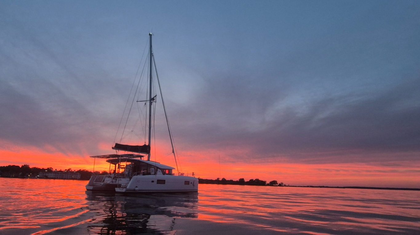 The next morning was an early start, however not as early as anticipated due to fog and bad visibility. We still managed to leave with the tide, heading for Fort Pierce, our next stop down the east coast. Coming into the channel, the tide and wind were not in our favour, and we had to take it carefully leading ‘Firefly’ in behind us. We anchored in one of the inlets and were joined for dinner by the son of one of Pete’s university friends who is currently undertaking his commercial pilot’s licence training nearby.