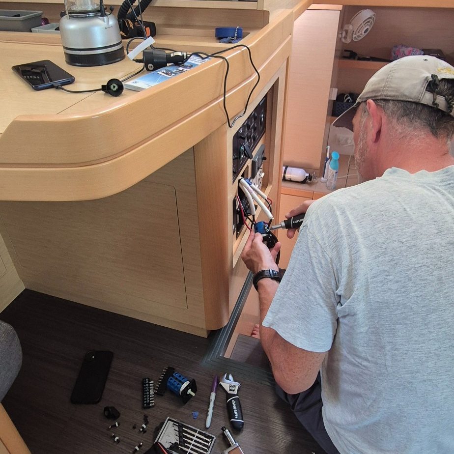 Our electronics expert come and look at our chart plotter, AIS and Victron battery system. Some work was needed on all 3 elements, but as they were a local company they came back within a couple of days to complete (most) of the work. We can now ‘see’ how much big, beautiful solar power we are getting into our batteries!
