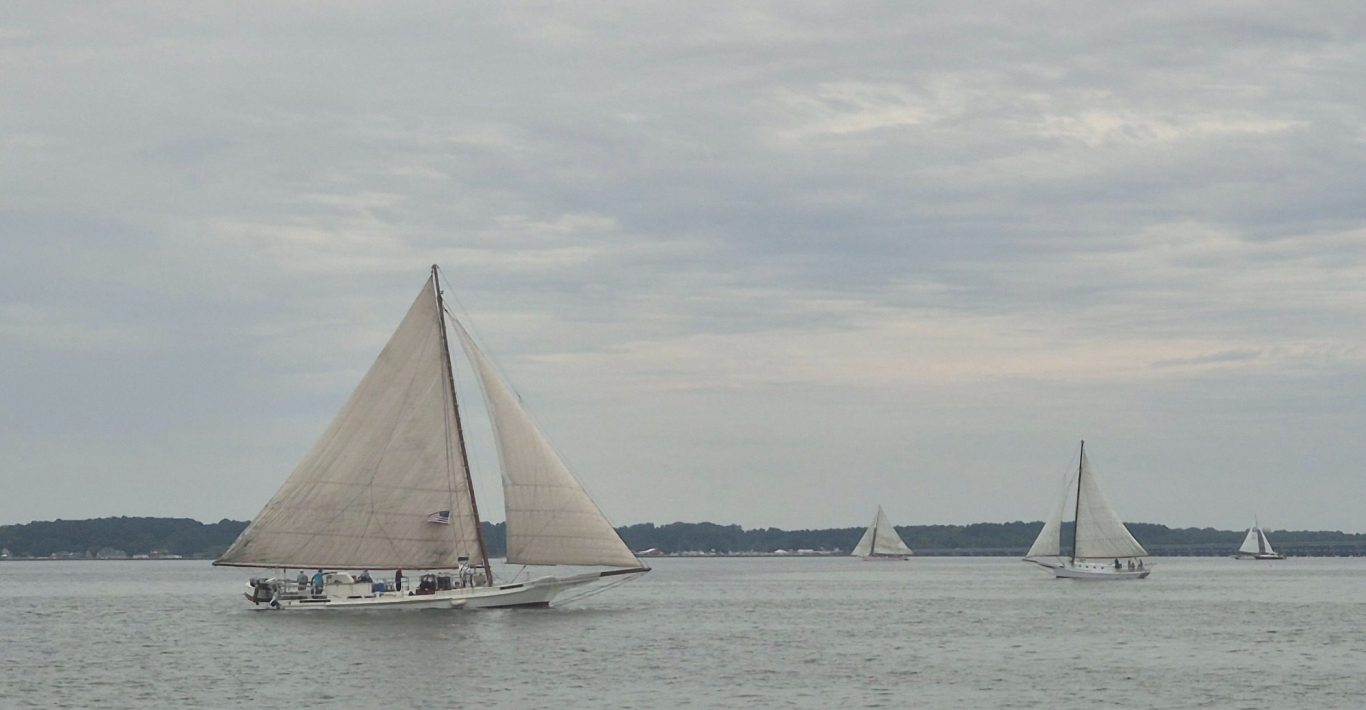 After saying goodbye to our guests, we set off to Oxford and Cambridge, two small towns on the Choptank River, although Oxford was most definitely the smaller of the two. Arriving in Cambridge on a Friday evening, we hadn’t known, but there was going to be quite a lot happening that weekend. Firstly, 12 Skipjack boats, the traditional sail boats used by the Oystermen, were gathered for a procession and a race on Saturday morning. We had unwittingly anchored next to the course they were due to sail, and so we sat on our beanbags watching them with a ringside view as they sailed straight past.