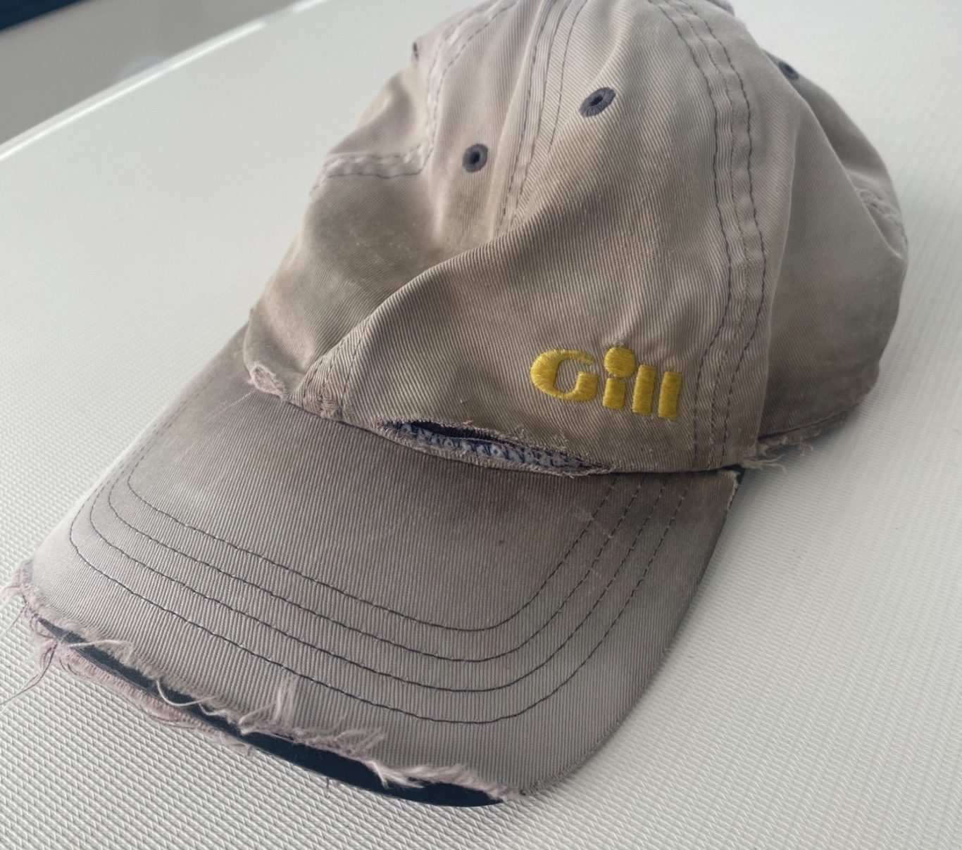 A sad moment for Pete: his beloved Gill sailing cap that he had taken on many adventures, (first photographed appearance in 2010), finally had to go. It was beyond saving, falling apart, incredibly sweaty and nothing like the dark blue colour it was when first purchased. It will, however, remain immortalised at the ‘signing tree’ on Allan Pensecola Cay, where boat memorabilia is tied up to decorate it and is a tourist attraction in its own right. Whilst we may not agree with the premise of ‘boat junk’ being left behind, at least this way the cap has a second life and is with other pre-loved items. Despite its venerable age, it is (was) still outlived by one of his T-shirts that is now 35 years old!