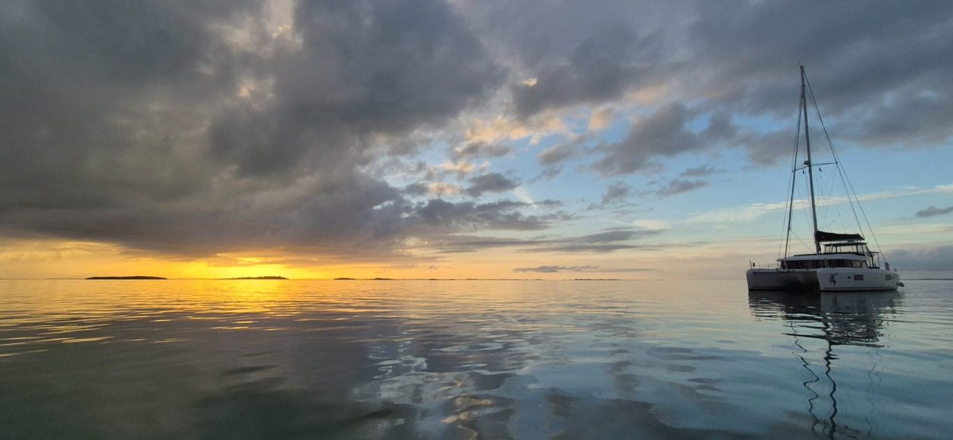 With a full complement of sailors, we decided to leave Eleuthera and head across to the Exhumas island chain. Along the way we used the Code Zero sail for the first time (a big foresail that is a little like a spinnaker) and pressed all 4 fishing rods into service. Pete’s line was the first to catch a fish, a small grouper, but we also lost 2 lures and a whole length of fishing line in the process. So far, the fish were winning! When we reached the other side at Norman Cay, we found a quiet anchorage and started to even the score when Jim & Kiddy found 2 huge lobsters, which meant christening the newly refurbished BBQ and having an epic seafood feast that evening.
