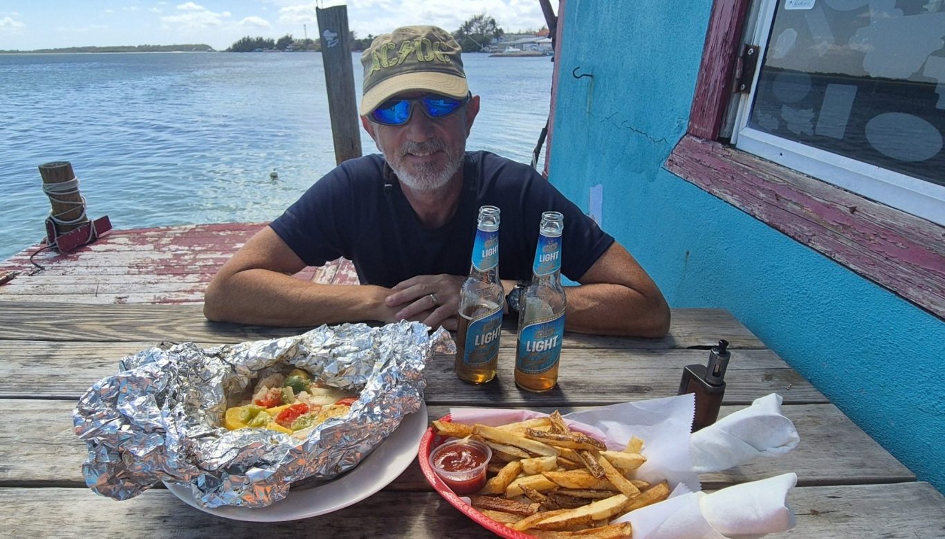 We were supposed to meet up with 2 good friends who were on a Virgin cruise from Miami, but due to the strong winds and rough seas, their ship was unable to dock and they couldn’t come ashore which was a huge shame as we had built our Bahamas cruising itinerary around being here on Bimini for that event! As consolation, we went on a walking exploration through the small towns and along the beach and had some nice conch fritters, grilled Bahamian prawns, fries and a couple of beers.