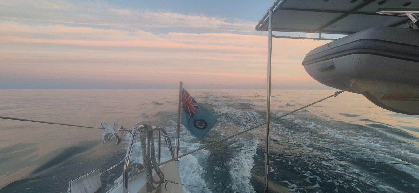 Along the way we had 2 of those ‘isn’t it a small world?’ moments – the first was a boat that overtook us and then called us on the radio as they had noted the RAF Sailing Association ensign we were flying. The skipper, Fred, had been an exchange pilot on 101 Squadron based at RAF Brize Norton in the late eighties and there were a few rogues that we both knew from that era. We exchanged email addresses over the radio, and he was very kind to send us some pics of us and the boat as they went past.