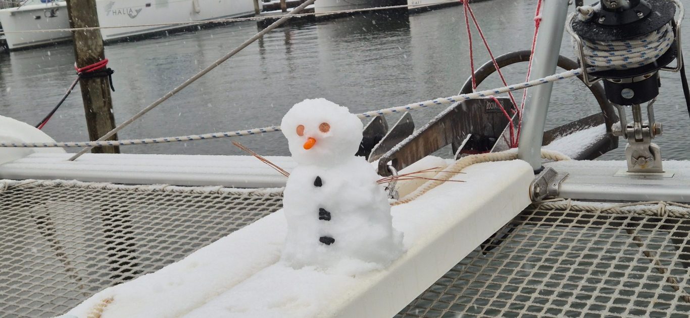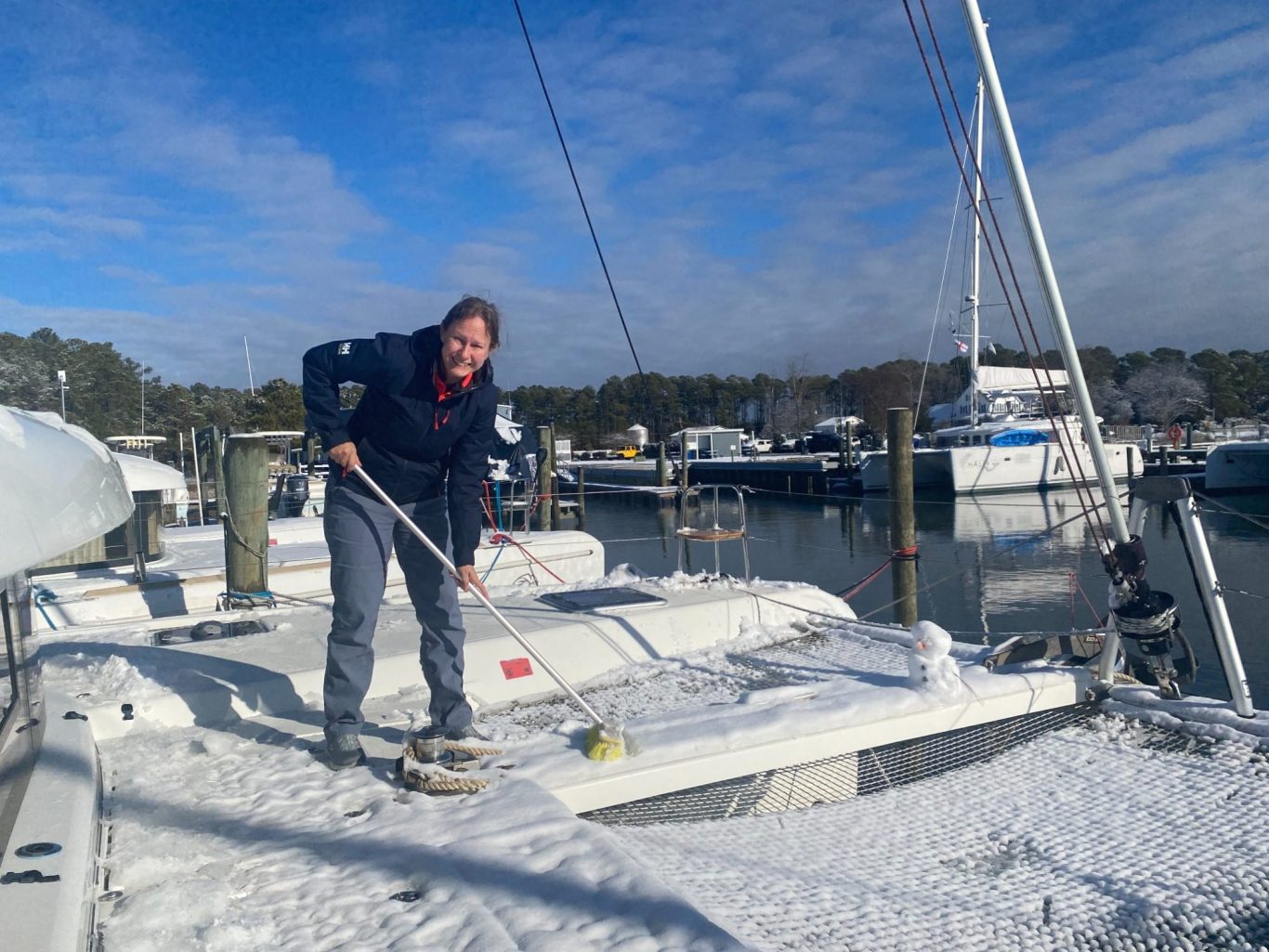 The boat finally went back into the water, and we were able to move back aboard. Due to the nature of the next few passages, we had engaged the services of our yacht broker, Kyle, to act as a skipper as he also does yacht deliveries. However, being ready later than anticipated, Kyle was unavailable for another week, so we had to stay in Virginia and endure the cold. And how cold it was! The heating on the boat was working flat out and one day we awoke to 4 inches of snow! Not quite the ‘tropical life’ dream both of us had imagined!