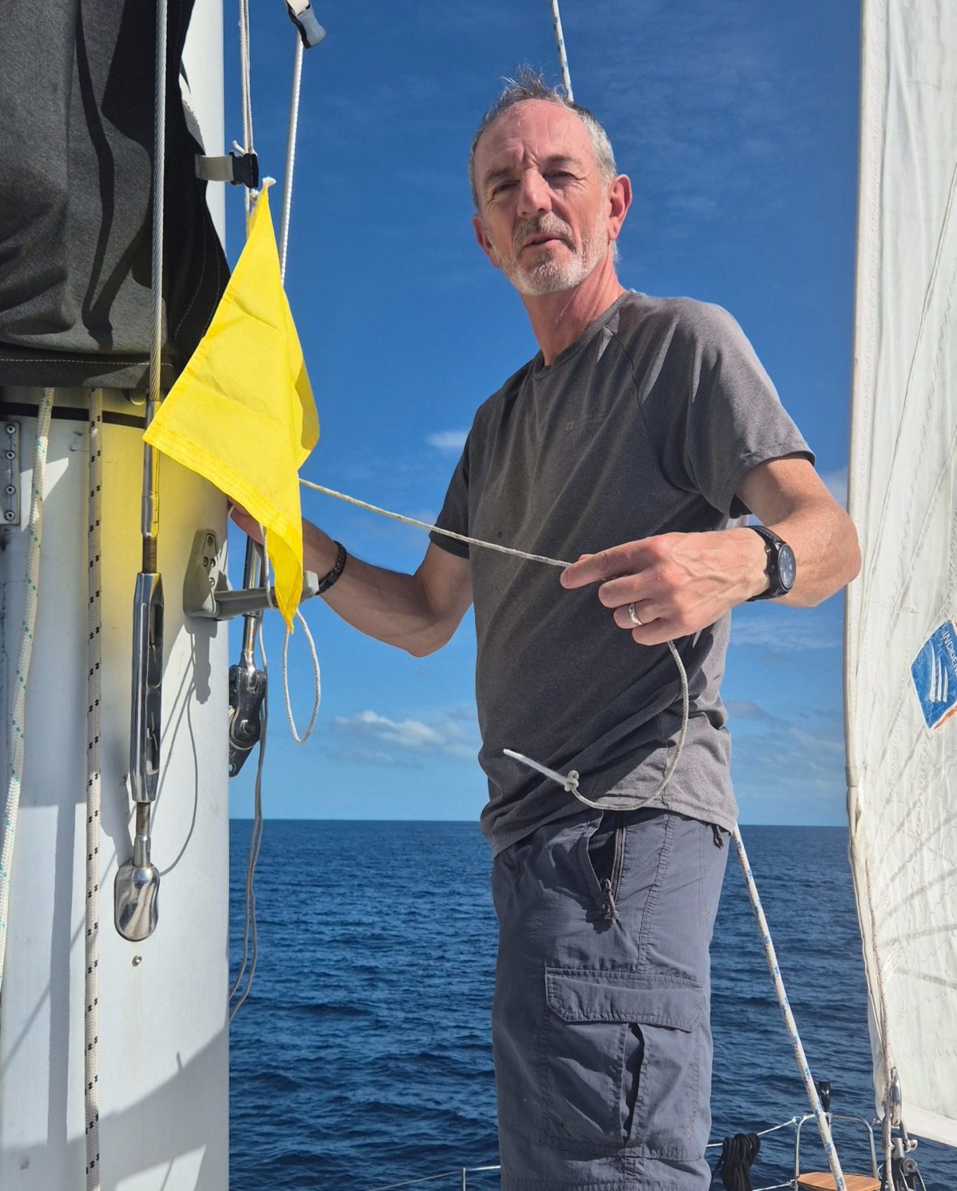 As we neared land, we raised our ‘Q’ flag, the yellow quarantine flag which indicates that we haven’t officially cleared customs or immigration – this needs to be flown until you are stamped in, when it gets swapped for a courtesy flag – this is the flag of the country you are visiting.